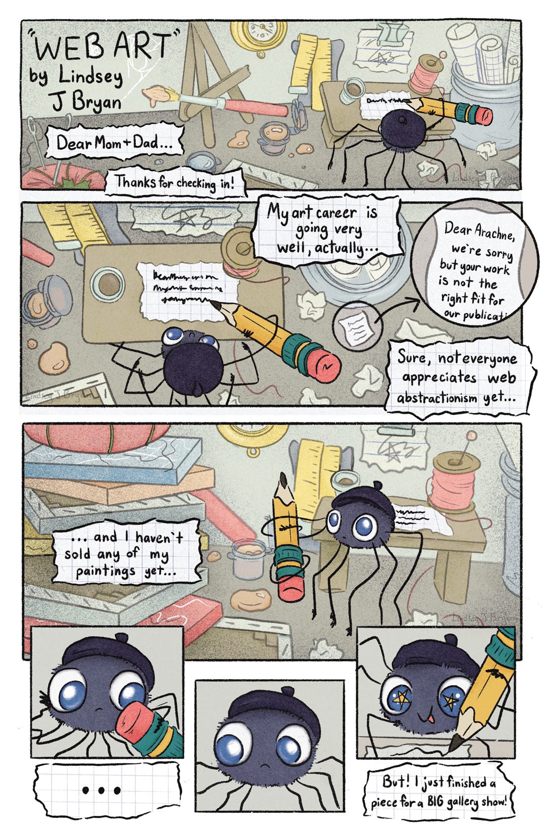 'Web Art'Meet Arachne, the misunderstood web artist.Lindsey BryanMar 13, 20251562ShareSubscribe to ‘Tiny Doorway with Lindsey B’ for more small stories, art inspiration, craft tutorials, and cute crittersSubscribeLeave a commentShare
